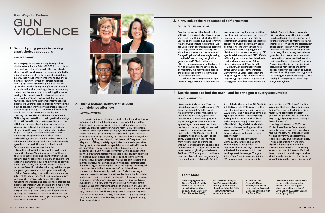 Reducing Gun Violence: Carleton alumni in law, advocacy, and public policy offer recommendations on change that can reduce firearm deaths.