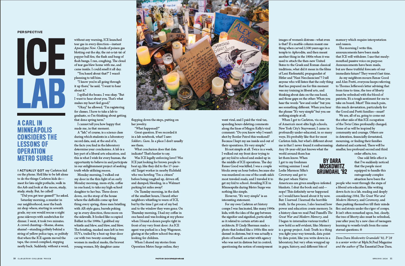 ICE Lab: Celebrated alumni journalist Dara Moskowitz Grumdahl reflects on the liberal arts, “truth,” and her experiences living blocks from the site of Alex Pretti’s murder.