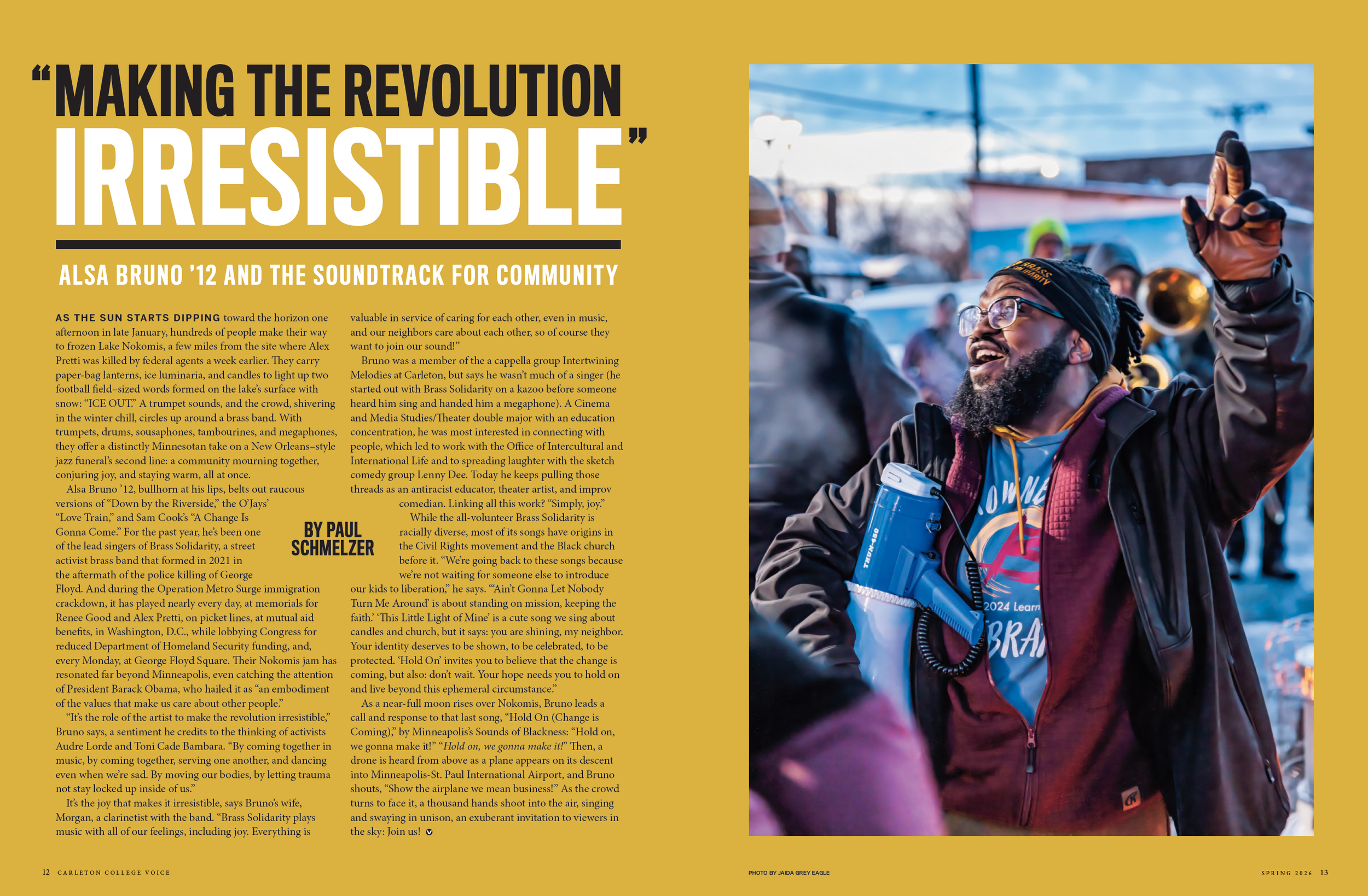 Making the Revolution Irresistible: My portrait of Carleton alum Alsa Bruno, lead singer of Brass Solidarity, an activist street band that’s been integral to the response to the anti-immigrant Operation Metro Surge in the Twin Cities and the aftermath of George Floyd’s murder.